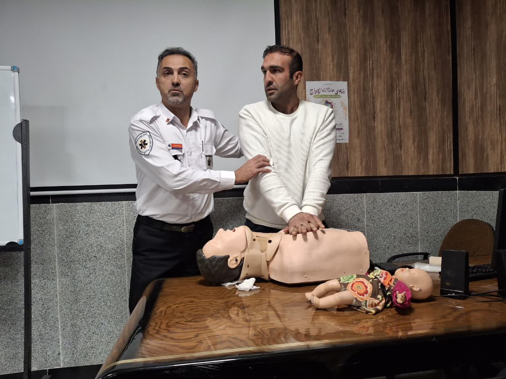 تدریس کمکهای اولیه و احیای قلبی ـ ریوی توسط مسئول آموزش اورژانس استان در نمایندگی بهارنکو ارومیه