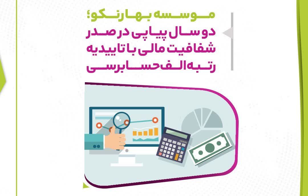موسسه مردم نهاد خانواده بهارنکو با افتخار اعلام کرد که گزارشهای مالی سالانه این مجموعه برای دومین سال متوالی، توسط یکی از موسسات حسابرسی رتبه الف کشور مورد تایید قرار گرفته است.