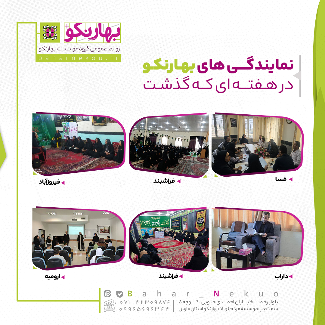 نمایندگی بهارنکو در فراشبند، همزمان با شب دوم ماه محرم، کارگاه آموزشی «والد و نوجوان» را با هدف ارتقای مهارتهای ارتباطی والدین با فرزندان در سنین نوجوانی، در زینبیه خواهران و با همکاری ادارات تبلیغات اسلامی، پایگاه حجاب برگزار کرد. در این کارگاه آموزشی، مدرس بهارنکو، با تأکید بر اهمیت تربیت نوجوانان و شیوه برخورد والدین با فرزندان در این مرحله حساس از رشد، اظهار داشت که دوران نوجوانی بهدلیل ویژگیها و چالشهای خاص خود، همواره یکی از دغدغههای اصلی خانوادهها به شمار میرود.